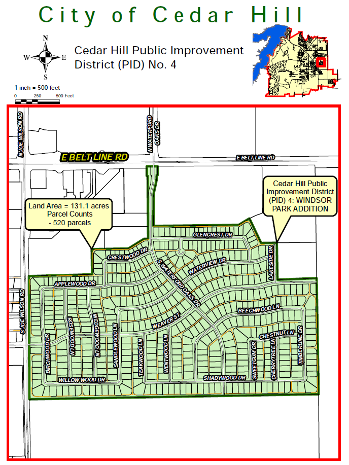 In 2017 the residents of Windsor Park subdivision petitioned to become the city’s fourth public improvement district, or PID. The special district, established by State statute, levies an additional assessment on all properties within specific boundaries. Typically a percentage of the appraised value of the property, the assessment is reflected on the annual tax statement and confers a special benefit on definable parts of the improvement district. To learn more about PIDs, click here.